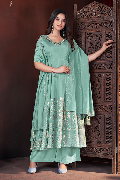 Beautiful Pista Color Ready to Wear Party Wear Salwar Suit