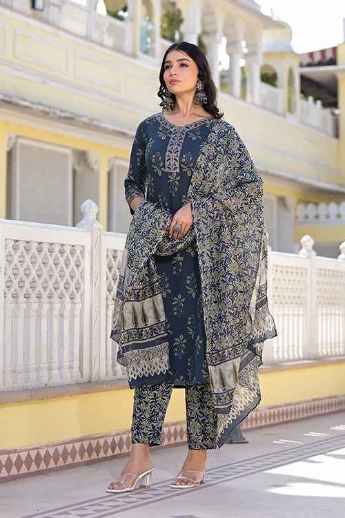 - Elevate your ethnic style with this Light Blue Printed Rayon Kurti Set, featuring a comfortable rayon fabric for the kurti, bottom, and dupatta. - The 45-inch kurti length adds grace to every step. - Perfect for casual gatherings, festive celebrations, or even office events, this full-stitched set is available in sizes S to XXL. - Pair it with soft curls or a simple bun hairstyle, opt for neutral makeup with a bold lipstick, and complete the look with silver juttis or block heels for a chic appearance.