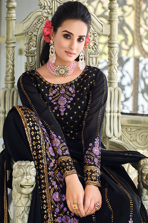 Dark Blue Georgette Thread And Sequins Embroidered Kurta Palazzo Set | M | Rs. 2,199.00