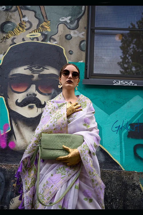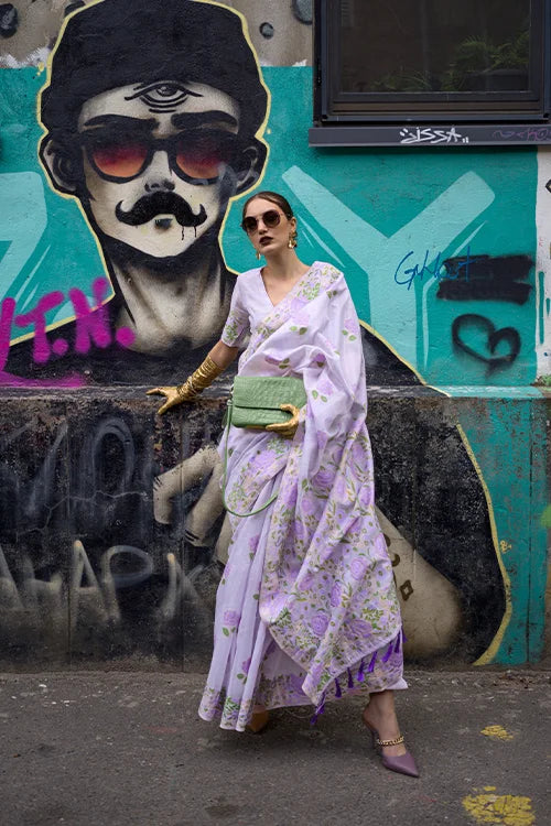 Lavender Banarasi Silk Zari Kashmiri Weaving Handloom Saree.