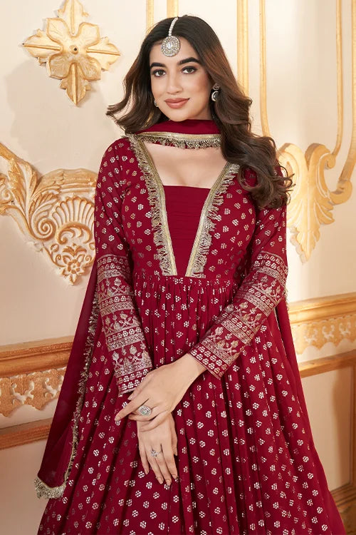 Wedding Wear Foil Printed Long Formal Gown for Women Wear | M | Rs. 3,000.00
