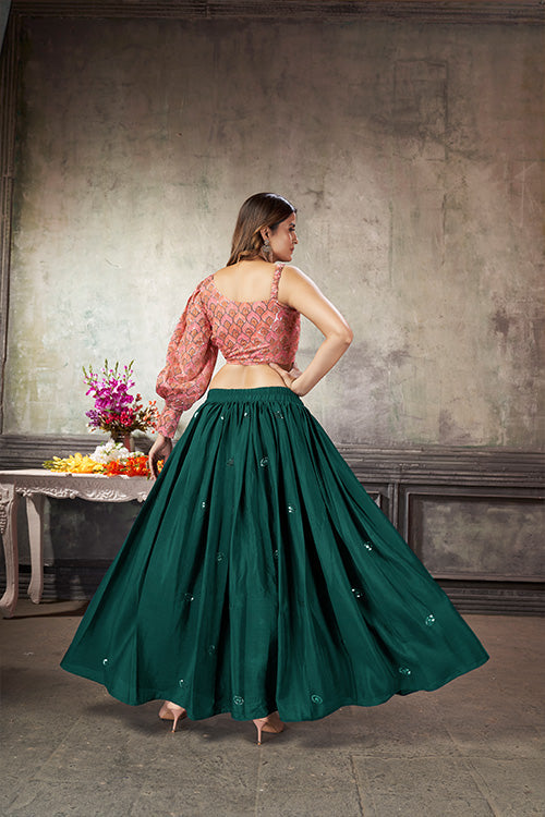 Green Art Silk Thread With Sequins Embroidered Crop-Top Skirt | M | Rs. 3,300.00