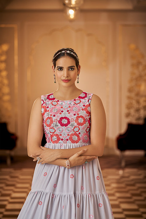Grey Georgette Thread And Sequince Embroidered Anarkali Gown