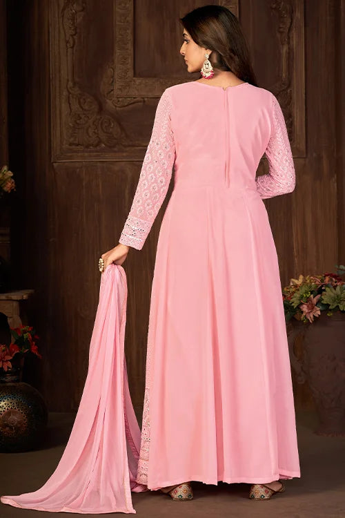 Long Flared Faux Georgette Sequins Embroidered Work Collection
