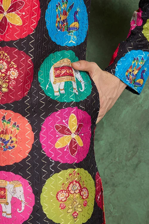 The Detailed Embroidery and Multi-hue Print of the Kurta Make It a Statement Piece for Any Function Outfit. Whether You Are the Groom's Brother or Attending a Family Celebration, This Kurta Offers a Rich Ethnic Feel With a Modern Color Palette.