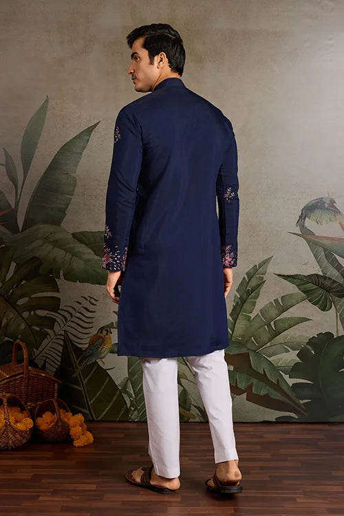 Wedding Special Navy Blue Embroidered Mens Kurta Set | M / Only Kurta | Rs. 2,699.00