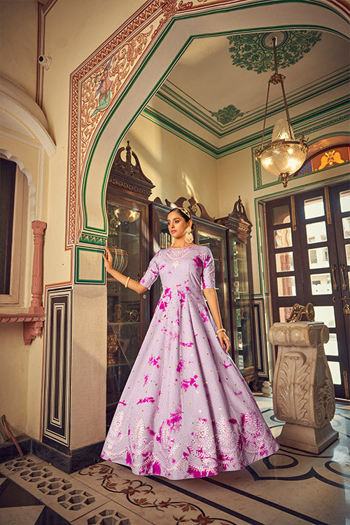 Cotton Shibori Print With Sequins Embroidered Anarkali Gown. Silk Crepe Inner In Gown.