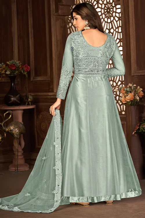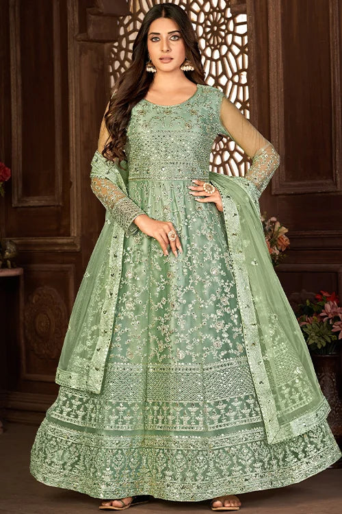 Party Wear Dori And Sequins Embroidered Work Dress | Green / Semi-Stitched | Rs. 3,249.00