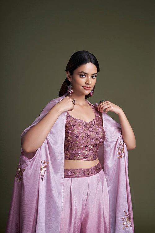 Pink Chinon Festive Wear Regular Fit Koti with Palazzo Collection