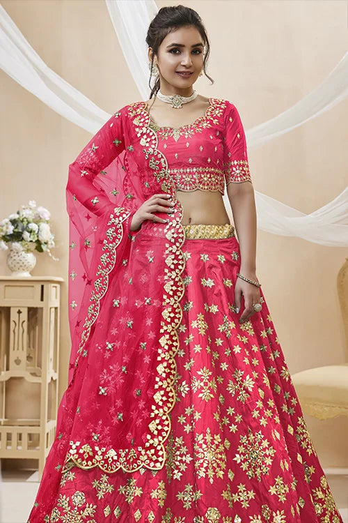 Make a Statement at Your Next Wedding or Festive Event With Designed Pink Traditional Embroidered Lehenga With Premium Art Silk Fabric and Showcases Intricate Zari and Sequins Embroidery, Making It a Perfect Choice for Brides, Bridesmaids, or Anyone Looking to Steal the Spotlight.