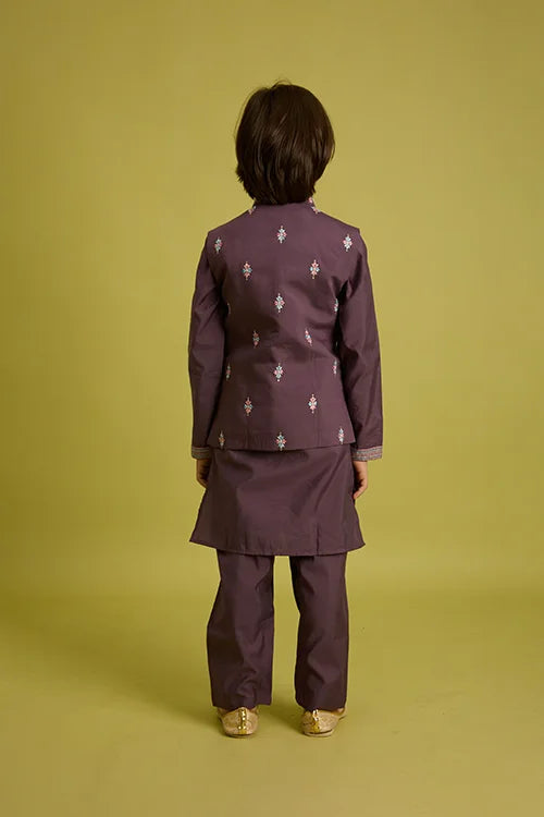 Premium Purple Kids Koti Kurta Pajama Set for Wedding Style