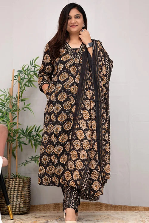 Top Fabric: Rayon. Bottom Fabric: Rayon. Dupatta Fabric: Chanderi Cotton Fabric. Size: Ready to Wear (S-M-L-XL-XXL) Unit: 1 U Kurti, 1 U Bottom, 1 U Dupatta. (We are Providing this item in the Parcel)
