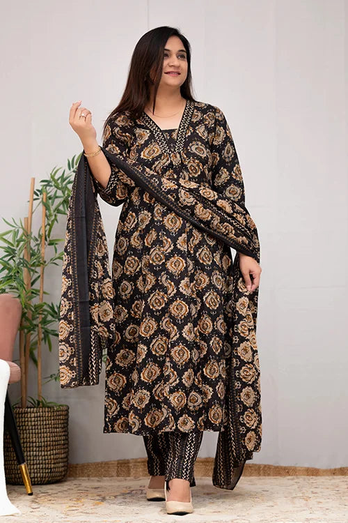 Printed Rayon Kurti and Chanderi Cotton with Dupatta Set | S | Rs. 1,599.00
