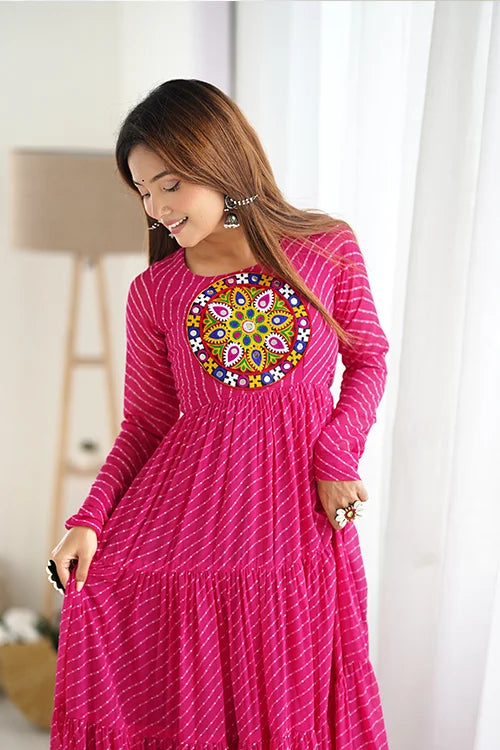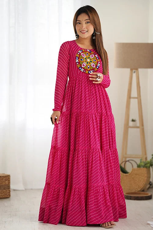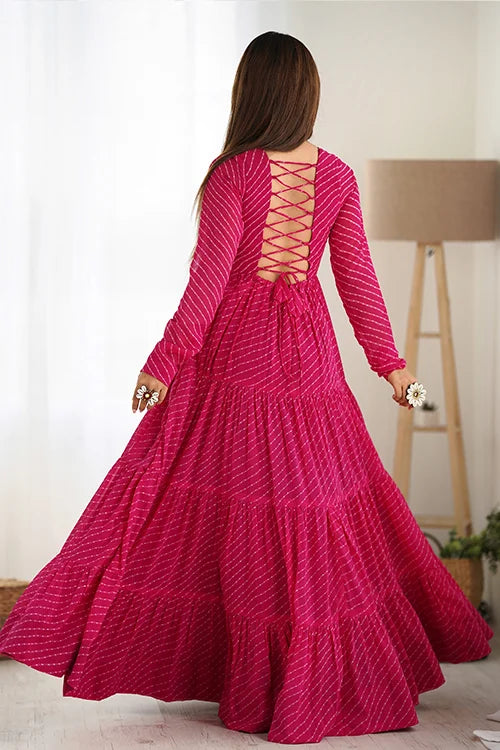 Rani Color Georgette Laheriya Print Anarkali Gown Collection