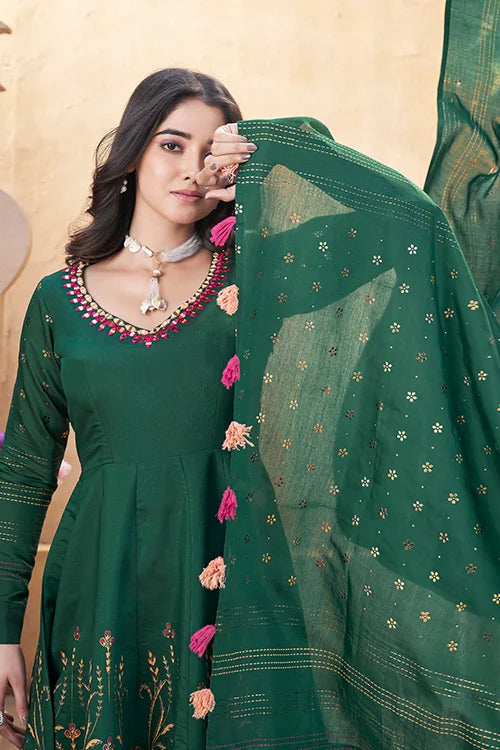 Green Mirror Work Designer Salwar Suit – a Timeless Blend of Elegance & Style