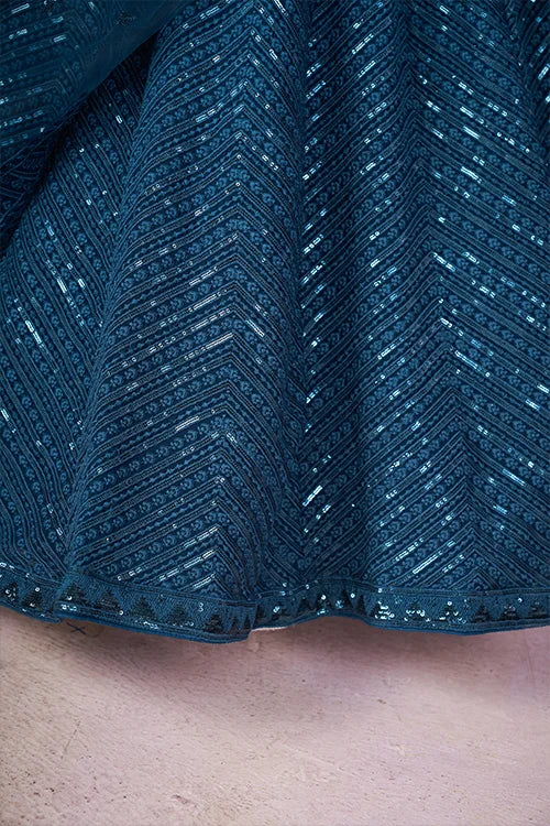 A Glamorous Statement: Stylish Blue Georgette Lehenga Choli