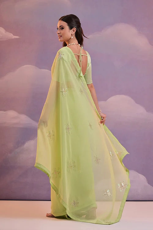 Parrot Green Stylish Floral Designer Embroidered Saree