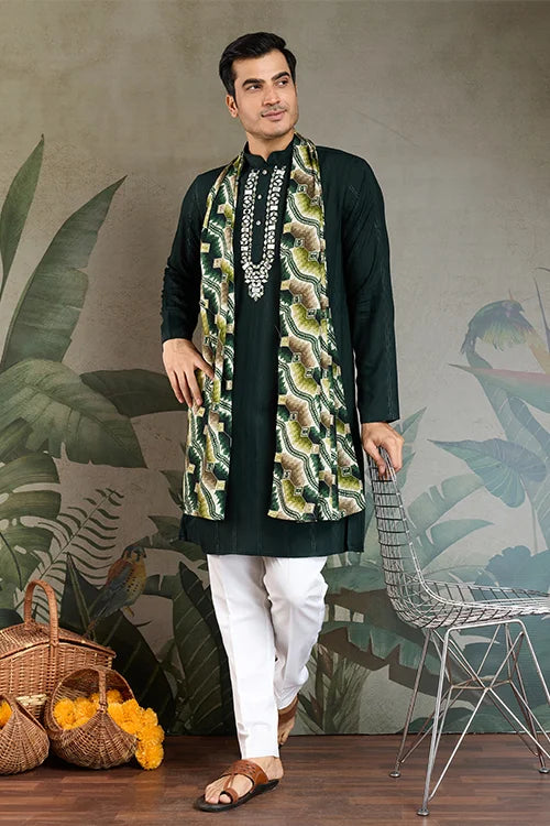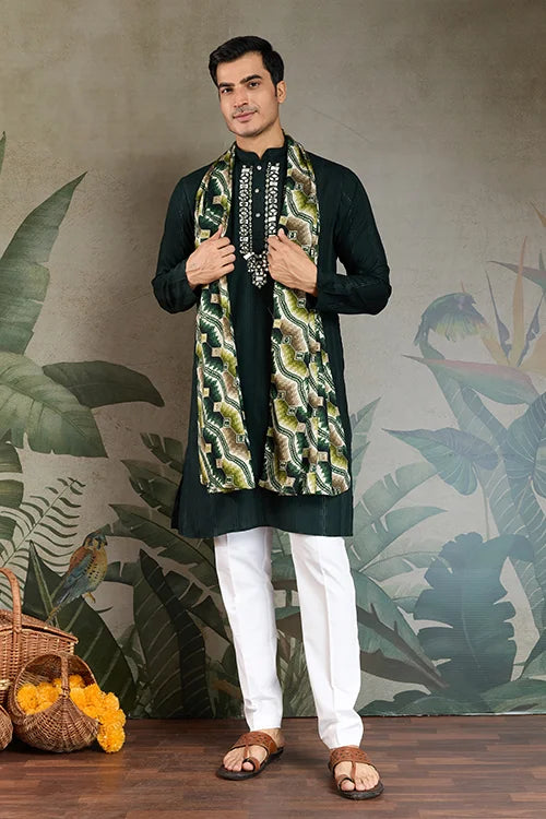 Traditional Green Kurta with Dupatta for Mens Wear