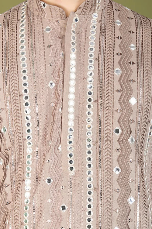 The Kurta Features Intricate Thread, Sequence, and Foil Mirror Embroidery That Showcases Fine Craftsmanship. Whether You Are Attending a Traditional Ceremony, Family Gathering, or an Elegant Evening Function, This Kurta Effortlessly Blends Tradition With Modern Sophistication.