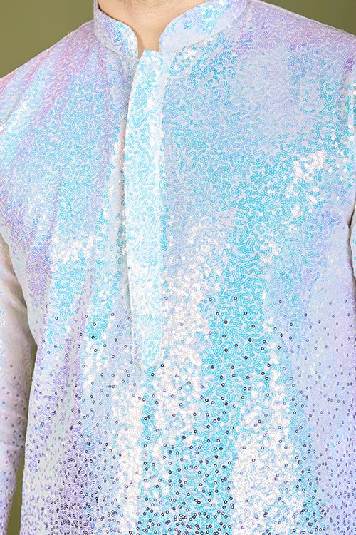 Introducing Our Exquisite Wedding Designer Ombre Purple Kurta for Men, a Perfect Blend of Tradition and Contemporary Style. This Kurta is Meticulously Crafted From Premium Real Georgette Fabric, Known for Its Lightweight and Breathable Properties, Ensuring You Stay Comfortable During Your Special Occasions.