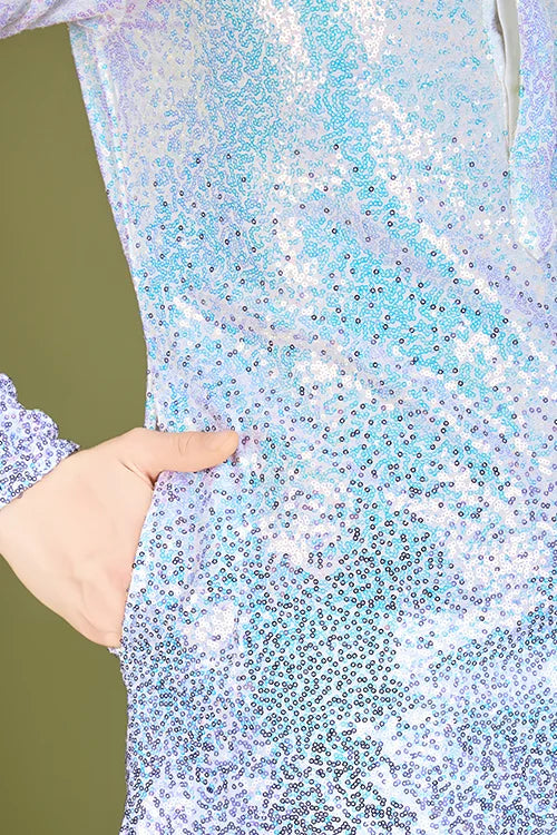 The Ombre Purple Hue Transitions Seamlessly From a Deep, Rich Shade to a Lighter Tone, Creating a Visually Stunning Effect That is Sure to Make You Stand Out. The Intricate Thread and Sequin Work Adorns the Front Panel and Sleeves, Adding a Touch of Elegance and Sparkle.