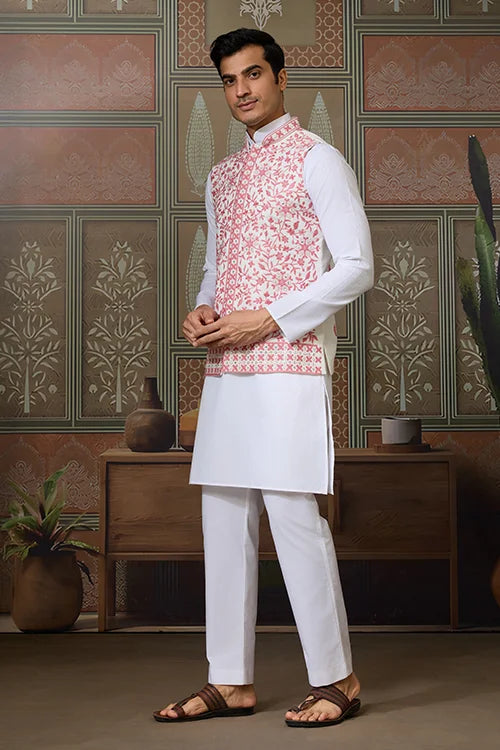 Wedding Pink Koti with White Kurta Pajama Set | M | Rs. 3,599.00