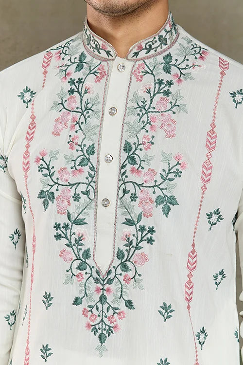 Wedding Special White Embroidered Silk Kurta | M / Only Kurta | Rs. 2,299.00