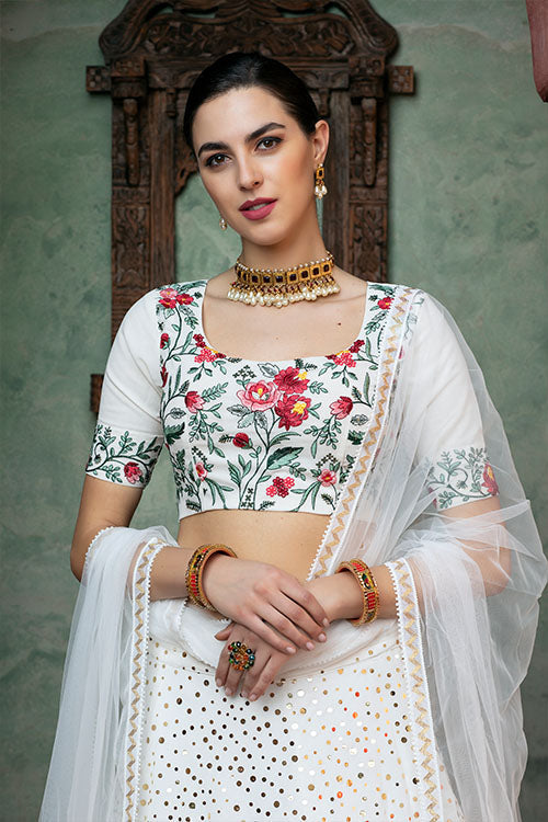 White Color Exclusive Sequins Work Embellishments Lehenga Choli Collection