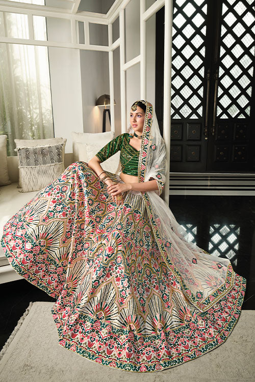 White Silk Thread With Sequince Embroidered Lehenga Choli | SEMI-STITCHED | Rs. 10,000.00